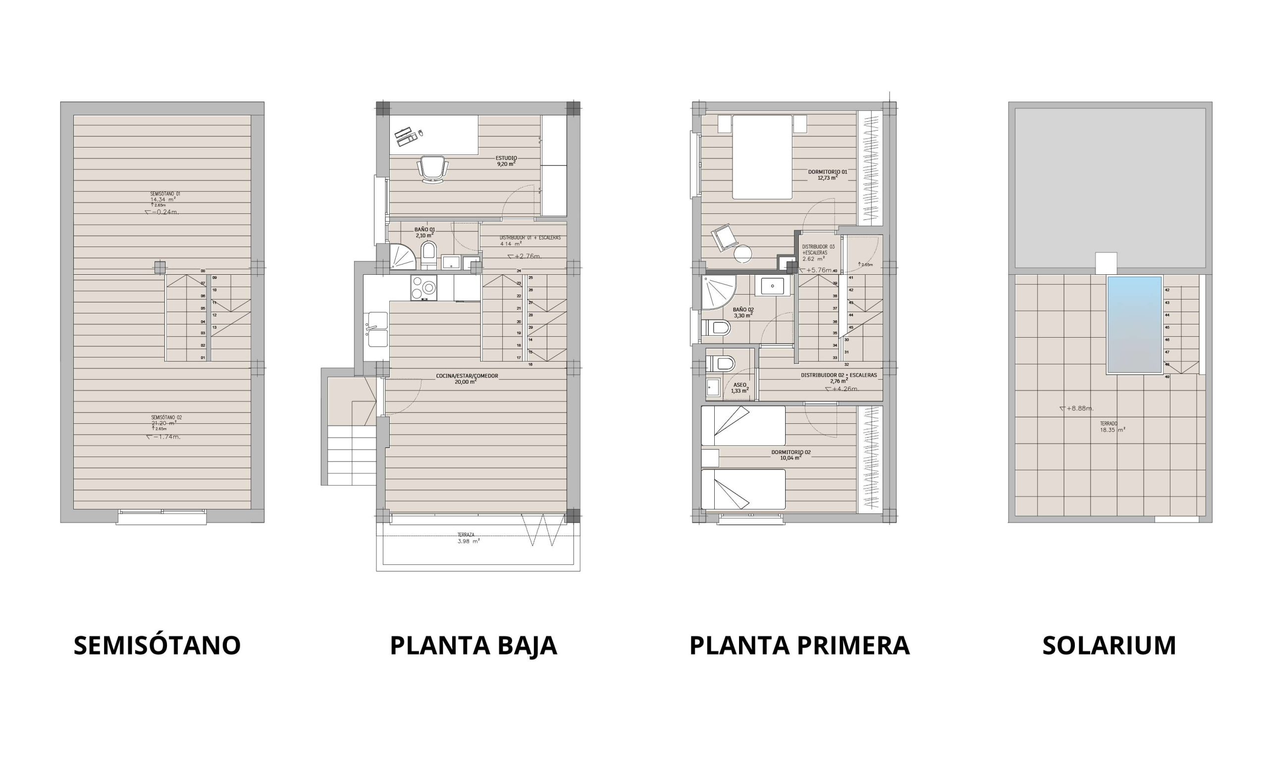 VIVIENDA N°TIPOSUP. CONSTRUIDA (m²)SUP. ÚTIL (m²)SUP. PARCELA / USO PRIVATIVO (m²)PLAZA APARCAMIENTOSUP. APARCAMIENTO (m²)